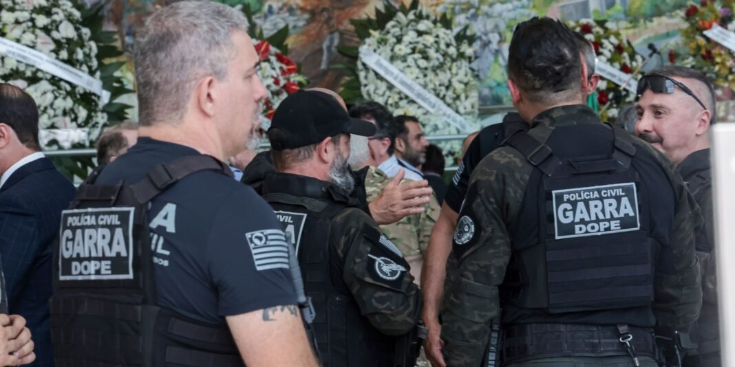 “Após exames periciais em um dos veículos usados pelos suspeitos e no local do crime, dois envolvidos foram identificados e tiveram suas prisões temporárias solicitadas à Justiça. Um deles já possui passagens por tráfico de drogas e roubo. As forças de segurança seguem empenhadas em identificar todos os envolvidos e esclarecer o crime”, informou a Secretaria de Segurança Pública, em nota, acrescentando que houve reforço do policiamento ostensivo com mobilização de unidades especializadas da Polícia Civil e do setor de inteligência da Polícia Militar.