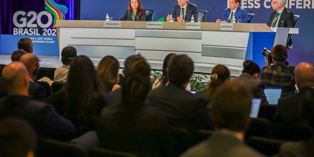 Pela manhã, o ministro reuniu-se, pela segunda vez em menos de um mês, com representantes da agência de classificação de risco Standard & Poor’s (S&P Global). No fim de setembro, Haddad e o presidente Luiz Inácio Lula da Silva reuniram-se em Nova York com representantes de outras duas agências: S&P e Moody’s.