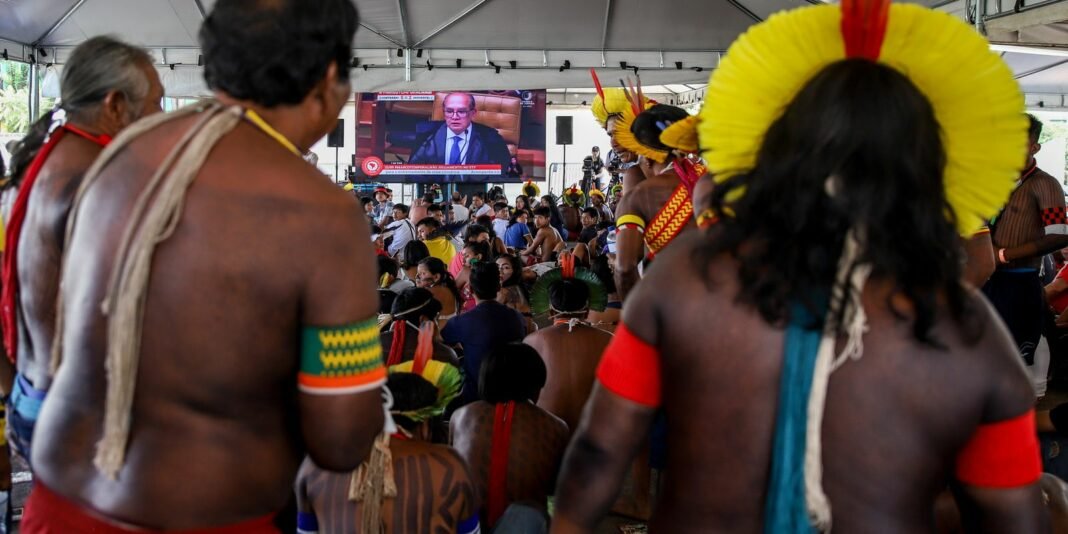 Em 21 de setembro deste ano, o Supremo Tribunal Federal invalidou a tese, que entendeu ir contra o que prevê a Constituição brasileira. Mas a Câmara e o Senado aprovaram um projeto de lei 8 dias após para incluir a tese do marco temporal em lei federal. Em outubro, o presidente Luiz Inácio Lula da Silva vetou parcialmente o projeto aprovado no Legislativo, argumentando que a tese já havia sido considerada inconstitucional. O Congresso, no entanto, derrubou os vetos do presidente
