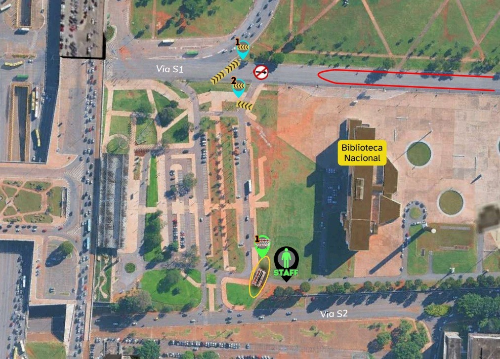 Todos os acessos à via S1, até na altura do Bloco D da Esplanada, serão fechados. O tráfego que segue pela via L2 Sul, sentido Esplanada, será direcionado para o Buraco do Tatuí. O acesso ao estacionamento da Catedral será permitido apenas pelo túnel da Cúria, na via S2.