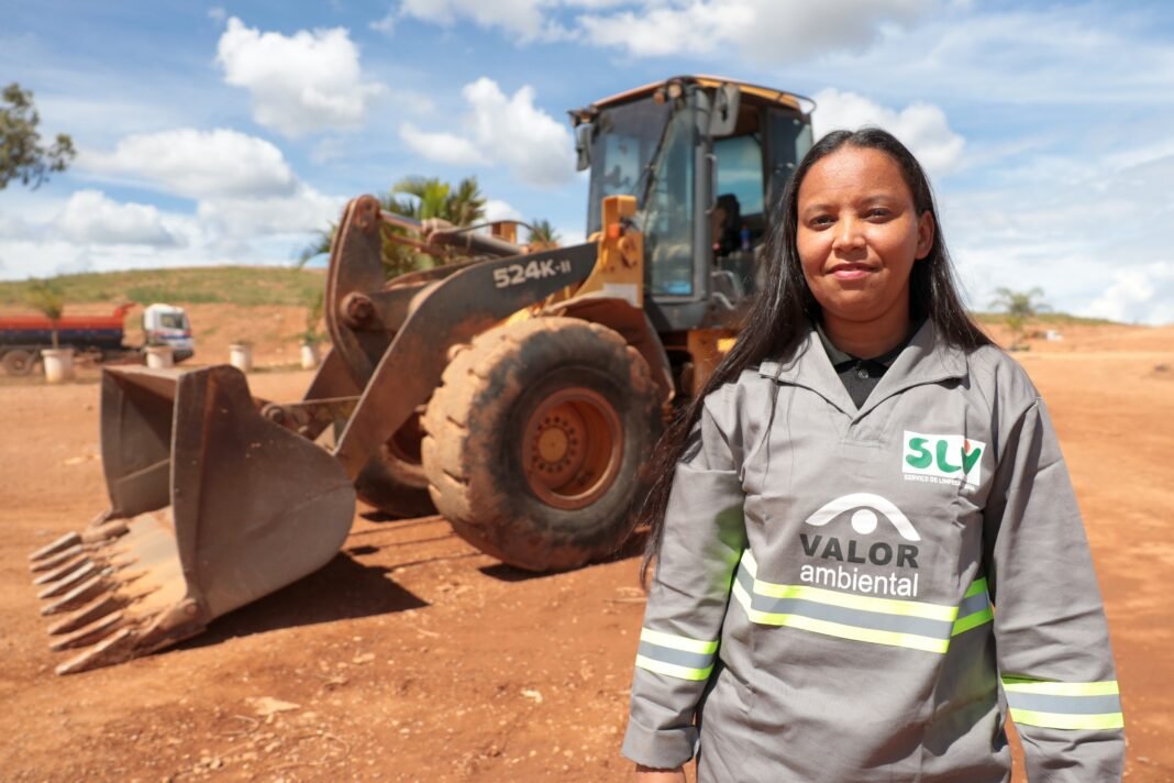 Lidiane do Nascimento é operadora de máquinas pesadas na URE: “Nunca conheci outra mulher que fizesse um trabalho como esse. Eu sinto muito orgulho” | Fotos: Divulgação/SLU