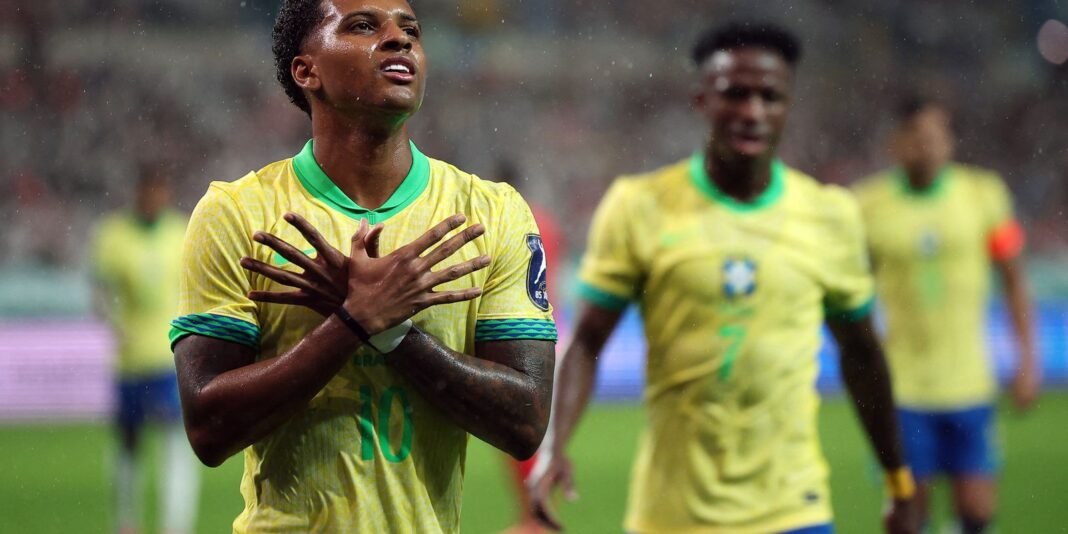 A seleção brasileira goleou a Coreia do Sul por 5 a 0 em partida amistosa, e mostrou que começa a evoluir sob o comando do técnico italiano Carlo Ancelotti quando falta pouco menos de um ano para o início da próxima Copa do Mundo. A principal virtude do Brasil, na partida disputada nesta sexta-feira (10) no Estádio da Copa do Mundo de Seul, em Seul, foi o bom entendimento do quarteto ofensivo formado por Estêvão, Matheus Cunha, Vinicius Júnior e Rodrygo.