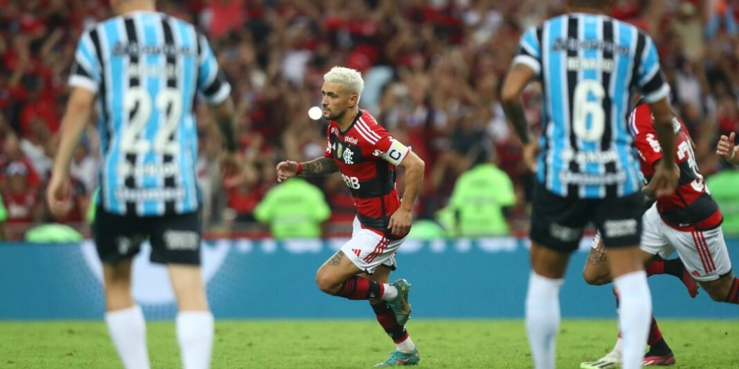 Porém, aos 24 minutos do segundo tempo o VAR (árbitro de vídeo) chamou o juiz para analisar uma disputa de bola na qual a bola bateu na mão do zagueiro Rodrigo Ely. E, após olhar no monitor, Bráulio da Silva Machado decidiu marcar pênalti. O uruguaio Arrascaeta foi para a cobrança e não falhou.