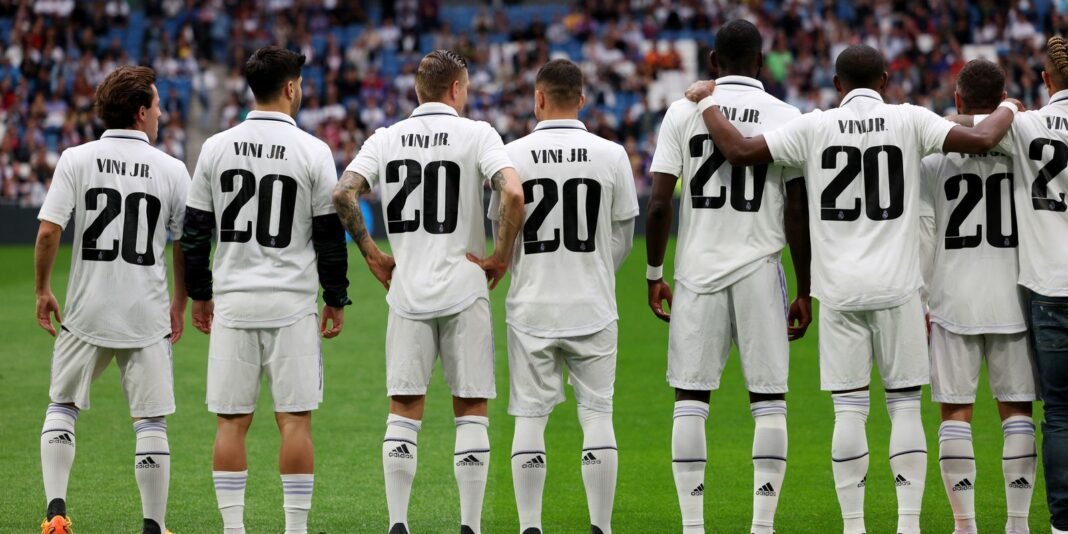 Uma das demonstrações de apoio veio do elenco do Real Madrid. Os jogadores da equipe Merengue, titulares e reservas, entraram em campo com a camisa de número 20 de Vinicius Júnior.
