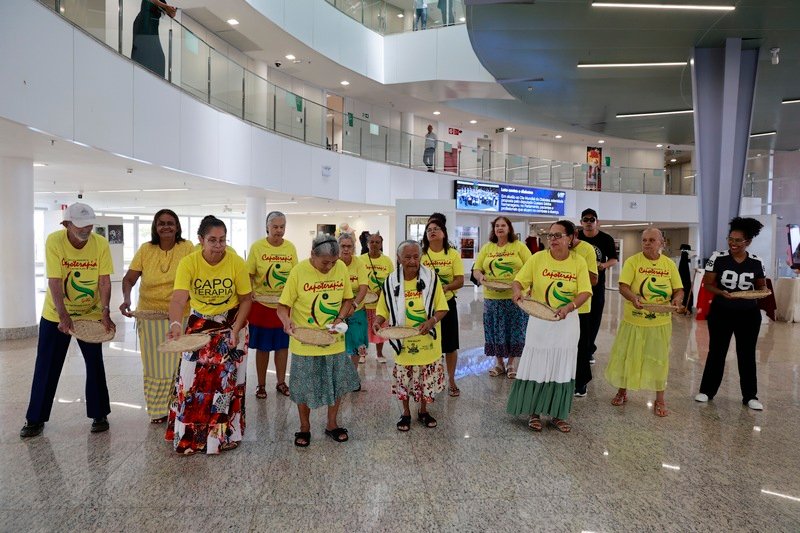 A manhã desta quinta-feira, 13, na Assembleia Legislativa do Estado de Goiás (Alego), ganhou um toque de ginga, música e vitalidade com a apresentação de um grupo de praticantes da capoterapia, modalidade terapêutica inspirada na capoeira que promove saúde física e mental. O evento, realizado no saguão principal, reuniu servidores e convidados em uma roda animada que celebrou a cultura brasileira e o bem-estar integral.
