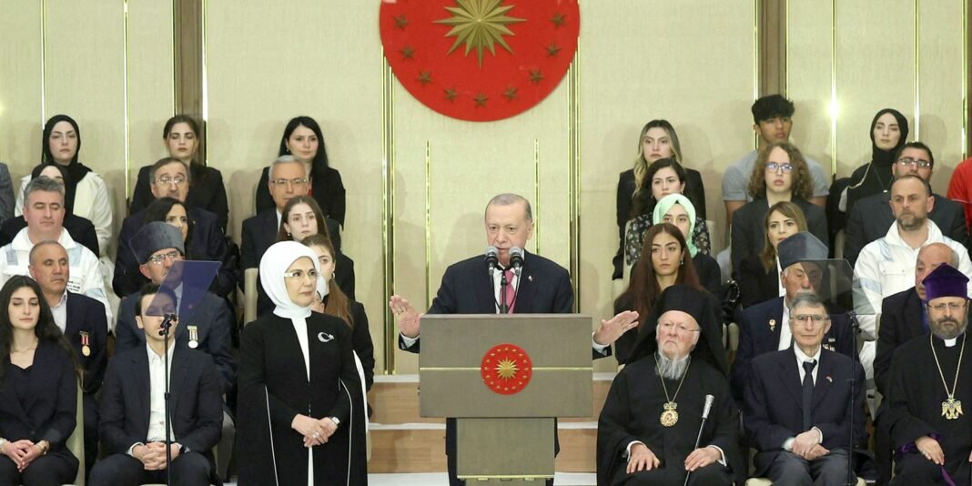 “Eu, como presidente, juro pela minha honra e integridade, diante da grande nação e história turcas, que protegerei a existência e independência do nosso Estado”, disse Erdogan, durante uma cerimônia no Parlamento em Ancara, transmitida ao vivo.